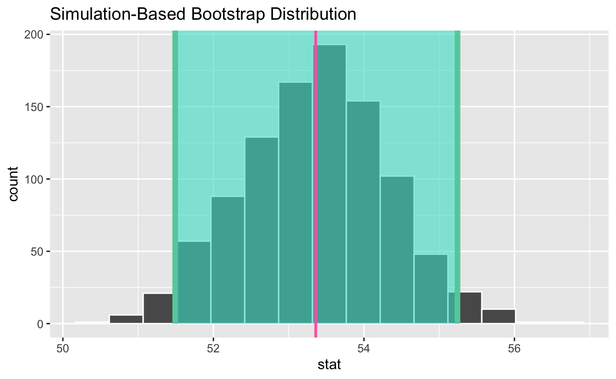Add a line at the observed mean, obs_mean_age, to your visualization and color it “hotpink”
